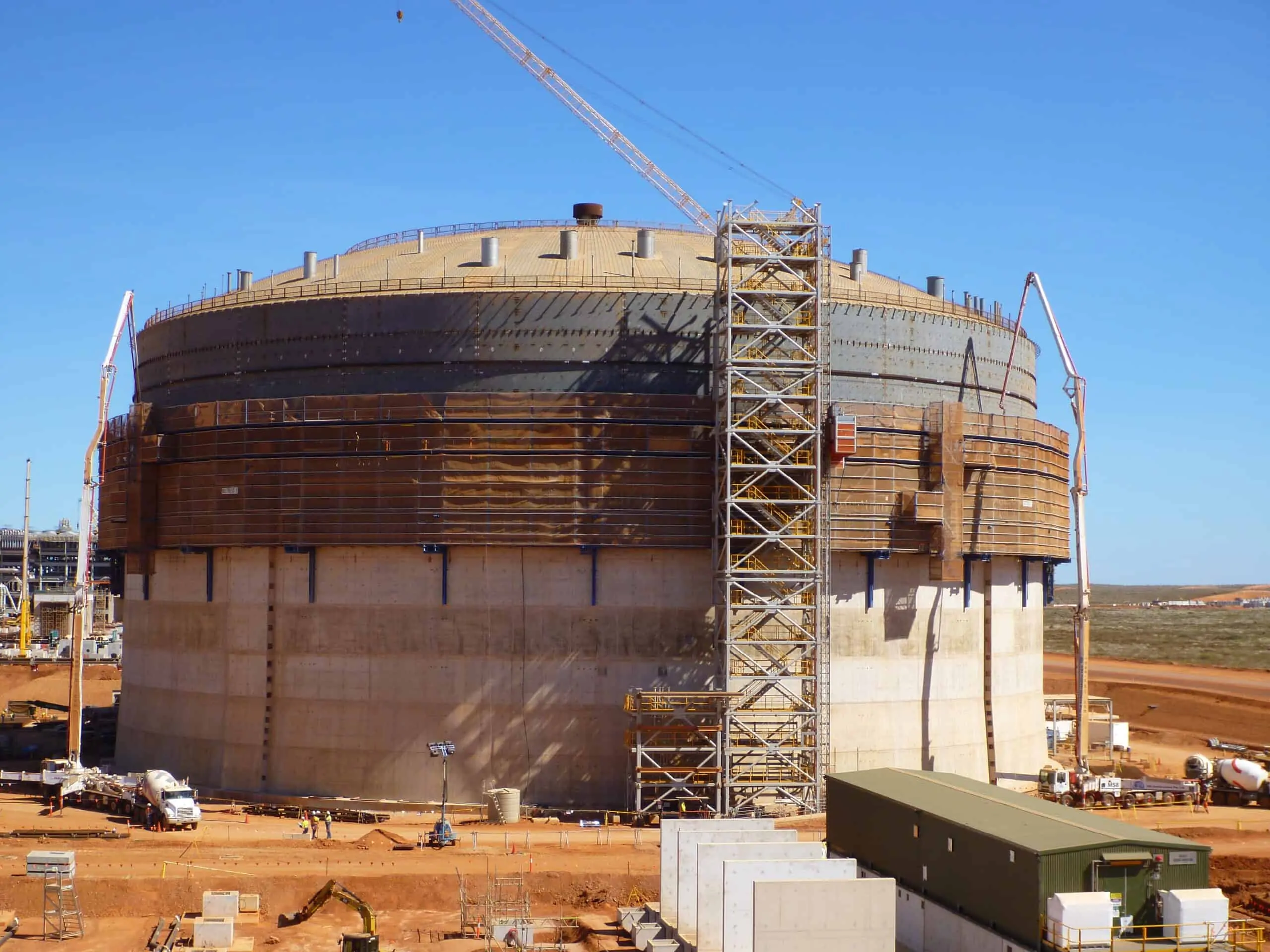 Construction of 2no. full containment LNG tanks of diameter 85m, 4no. Condensate tanks of diameter 60m and 5no. Miscellaneous tanks as part of the Gorgon LNG Project, located on Barrow Island, West Australia.