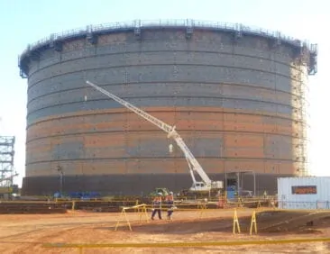 2. 778 tonnes of steel for 8no. Working platforms (Wind Girders) for the erection of the steel tank linings on both the LNG and Condensate tanks.