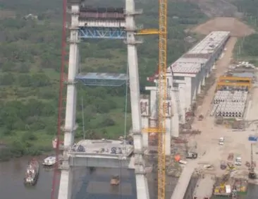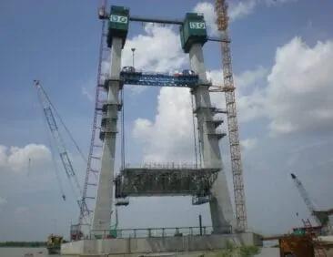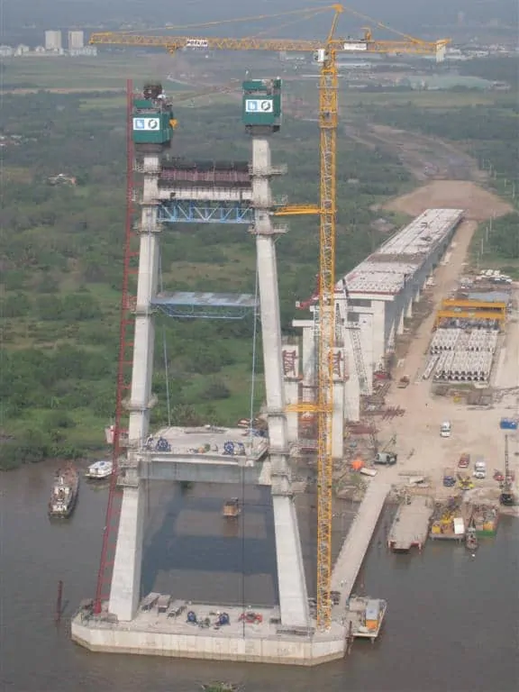 The first pylon commenced construction in January 2008 and was completed in October 2008. Completion of the second pylon was in March 2009 & the bridge was opened 4 months ahead of schedule.